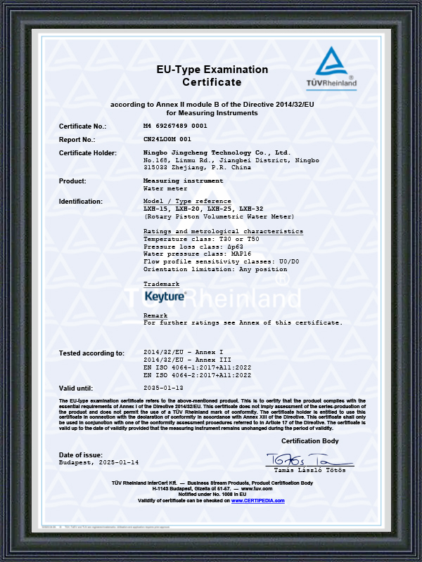 ±2% for water having a temperature ≤30℃ ±3% for water having a temperature >30℃ |